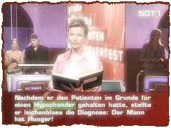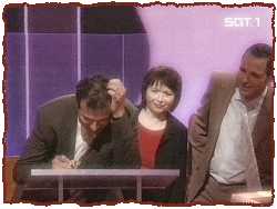 Eligmann: Und damit steht das Finale fest. Wir haben zwei Finalisten. Stephan Lucas und Frau Kallwass. Die Psychologin und der Staatsanwalt. |